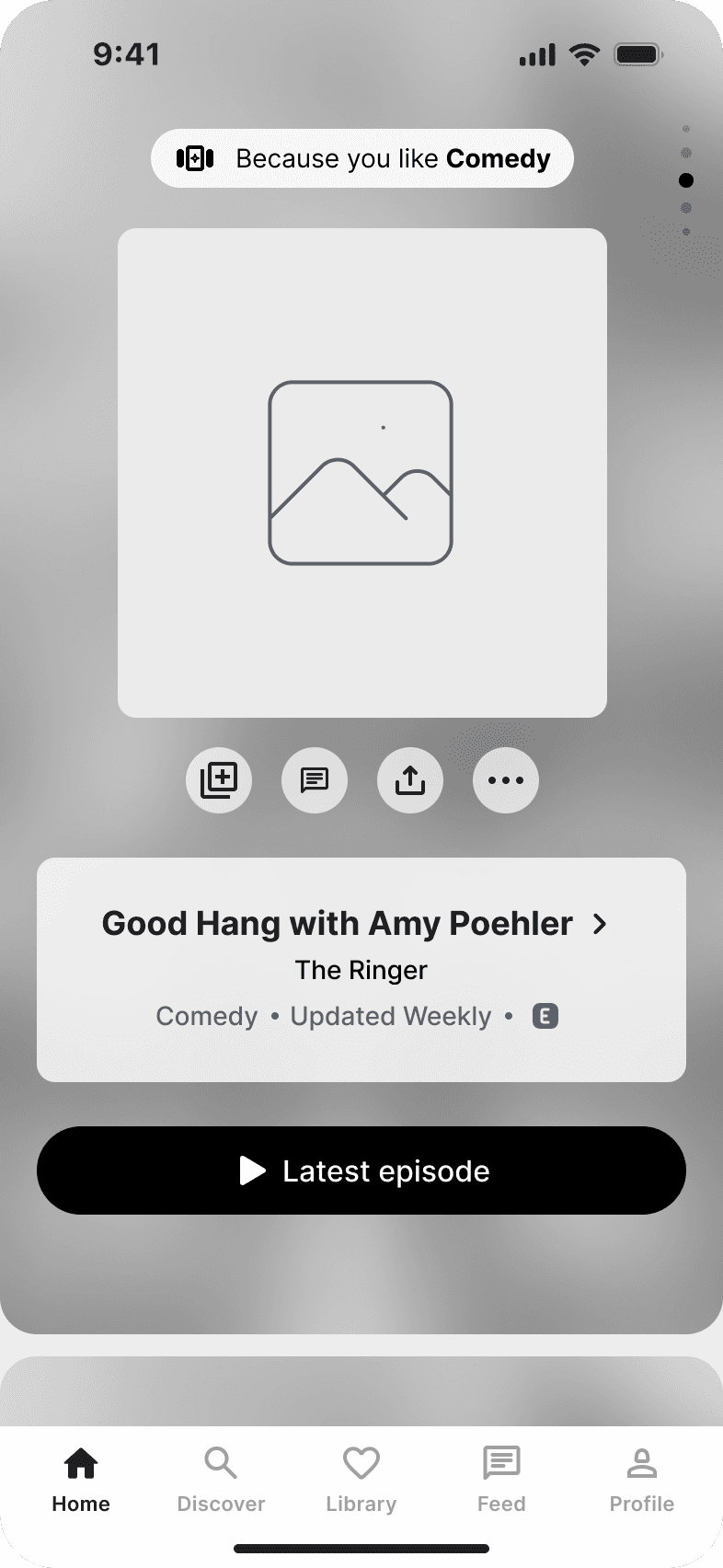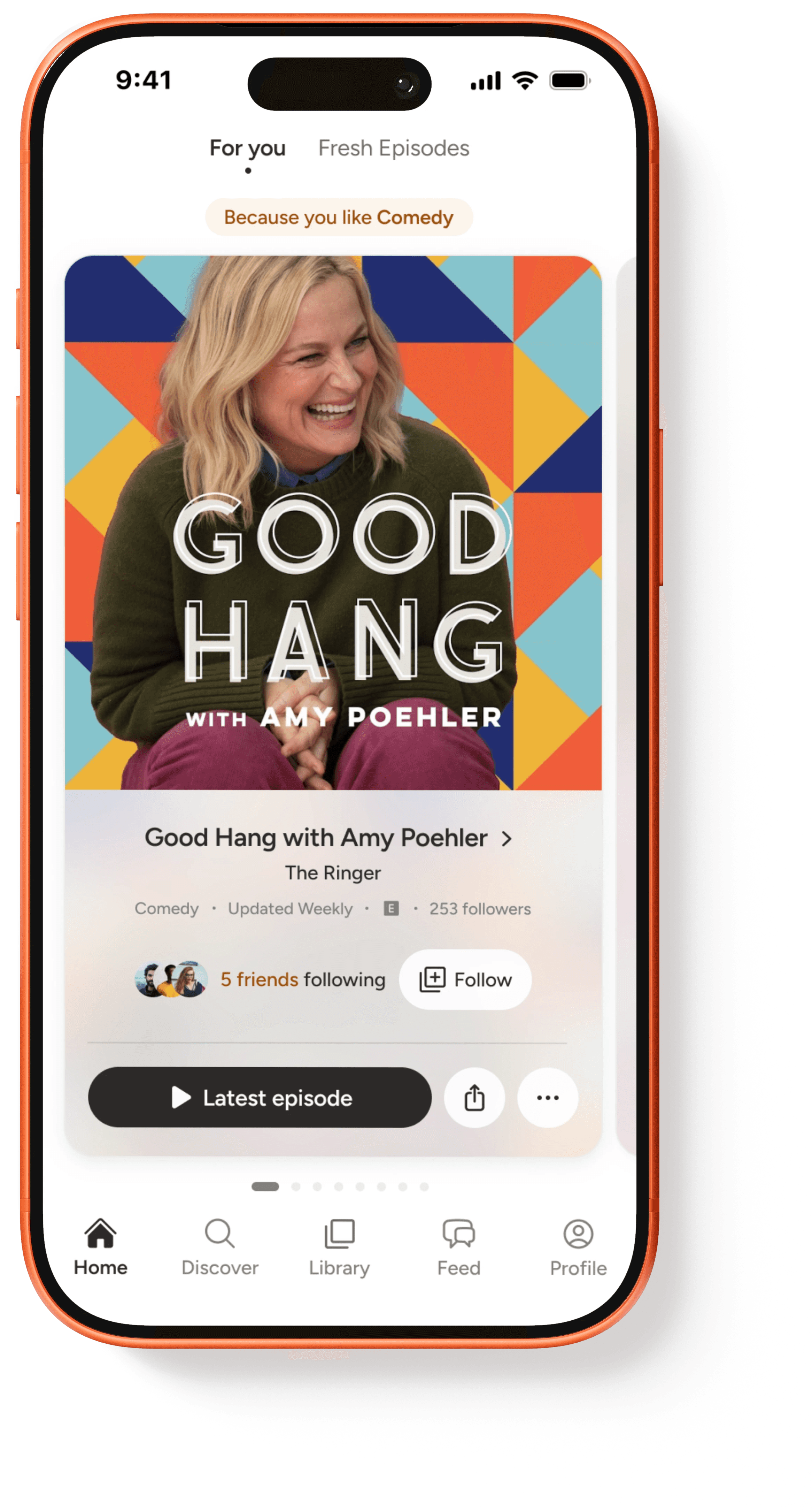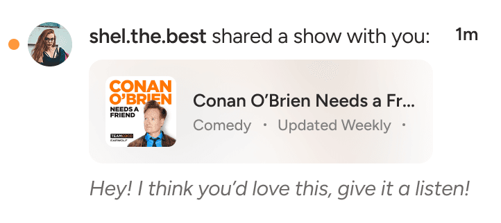 Friend activity that's impossible to miss. Real-time posts, comments, & listening activity stay front & center (not buried like in Spotify, or nonexistent like in Apple Podcasts).